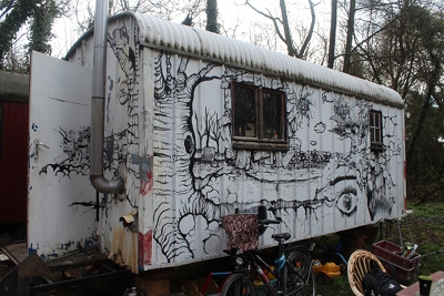 We live in Germany in an intentional community called a Wagenplatz. This is what our house looks like. In three parts.