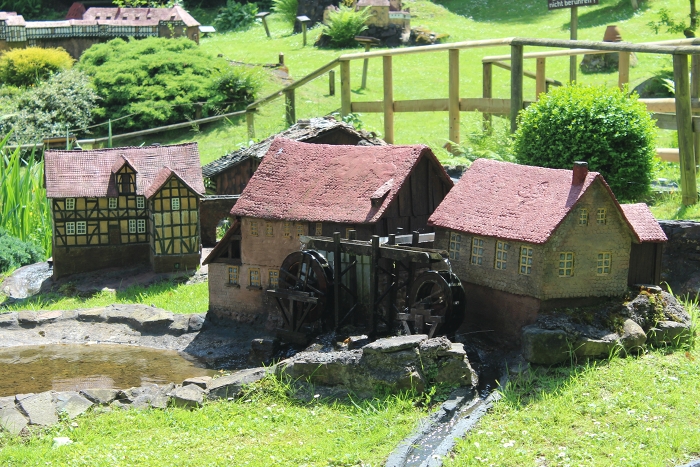 By chance, I had read about Mühlenplatz in a flier detailing the local sights and a circular bike trail that could bring a body to a number of sights along the Fairy Tale Road. Mühlenplatz is an outdoor museum containing miniature models of many of Germany’s most important castles, buildings, and mills. It sounded slightly weird—in that roadside stop, “See the Biggest Rubberband Ball in the World” kind of way—and looked like the kind of thing I would like taking pictures of and a two-year-old would like running around. Correct on both counts.
