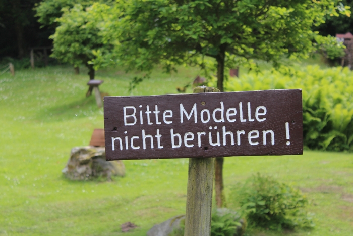 And in Germany, isn’t there always a sign? (Translation: Please don’t touch the models.) Ah well. She didn’t get us kicked out, even when she took off her shoes and threw them in the creek. Even when she tried to climb Neuschwanstein. Even when she tried to open the windows off all the little houses.